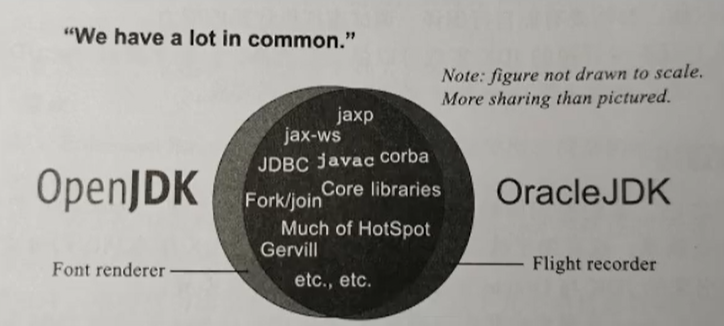 在JDK11之前,oracleJDK中还会存在一些openJDK中没有的、闭源的功能。但在JDK11中,我们可以认为openJDK和oracleJDK代码实质上已经完全一致的程度。