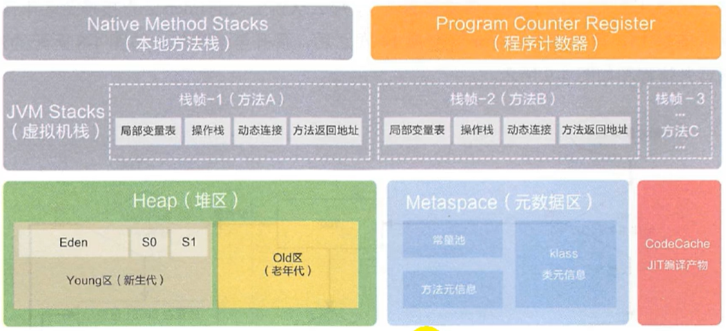 运行时数据区,也就是下图这部分,它是类加载完成后的阶段