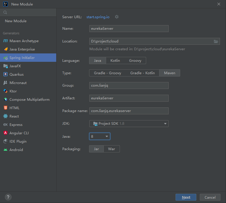 创建服务注册中心 首先创建一个maven主工程。然后创建2个model工程:一个model工程作为服务注册中心,即Eureka Server,另一个作为Eureka Client。